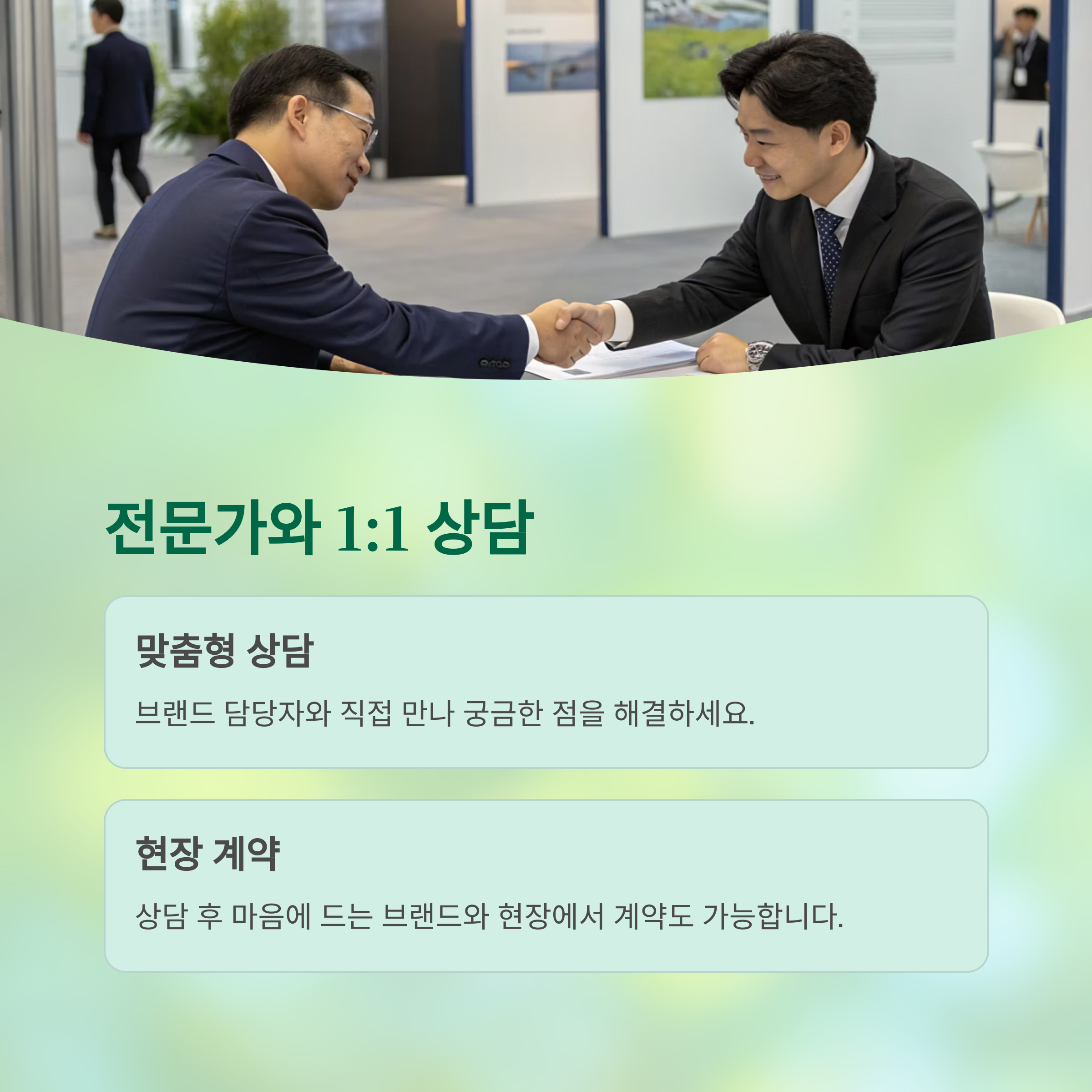 박람회에 참가하기 전 사전 등록을 해두면 입장료 할인과 다양한 사은품 혜택도 받을 수 있습니다. 또한 참가 브랜드 리스트를 사전에 검토해 관심 있는 브랜드를 체크한 후 방문하면 현장에서 더 효율적인 상담이 가능합니다.