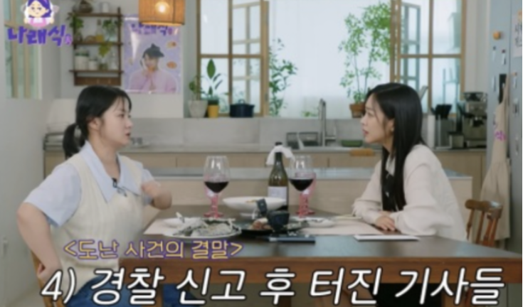 "나래는 저날 도둑 들었음ㅠ"이라는 짧은 설명이 그녀의 부재를 대신했죠.