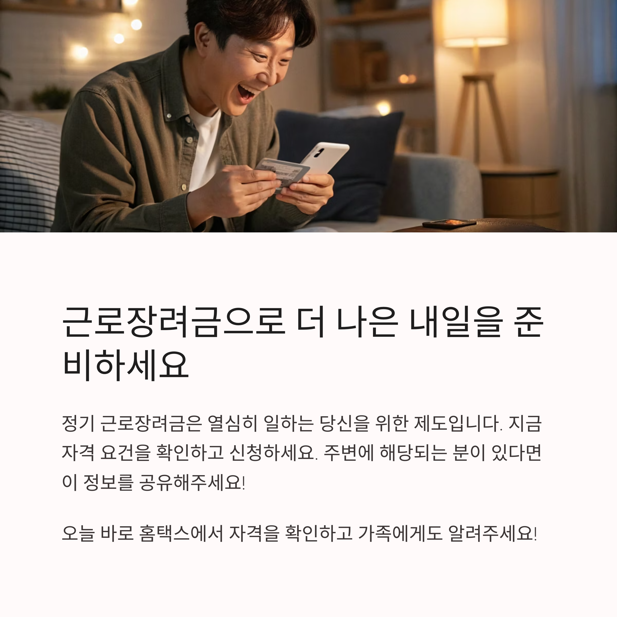 이처럼 근로장려금은 단순한 돈을 넘어, 희망과 용기를 주는 제도입니다.