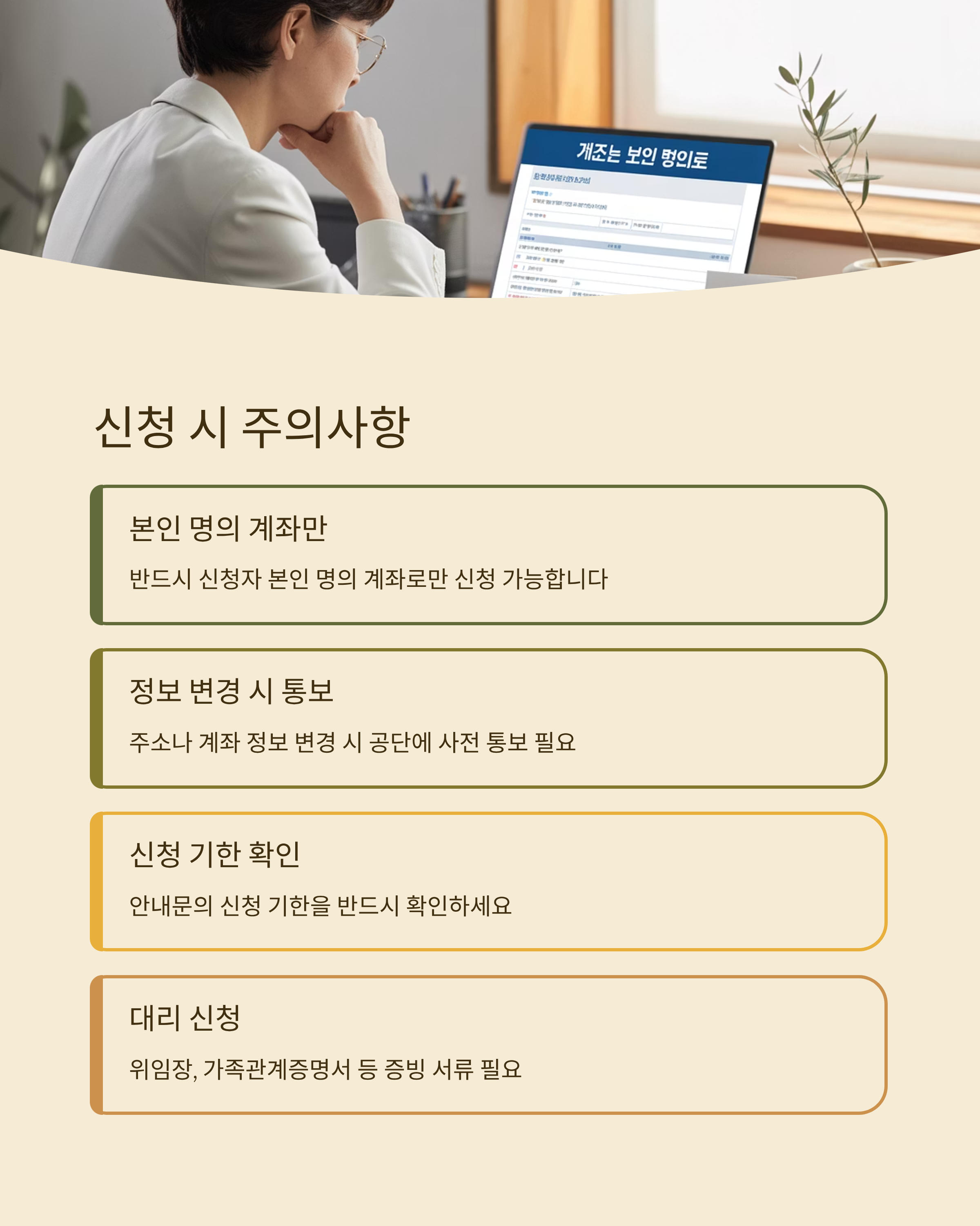 * 반드시 본인 명의의 계좌로 신청해야 합니다.