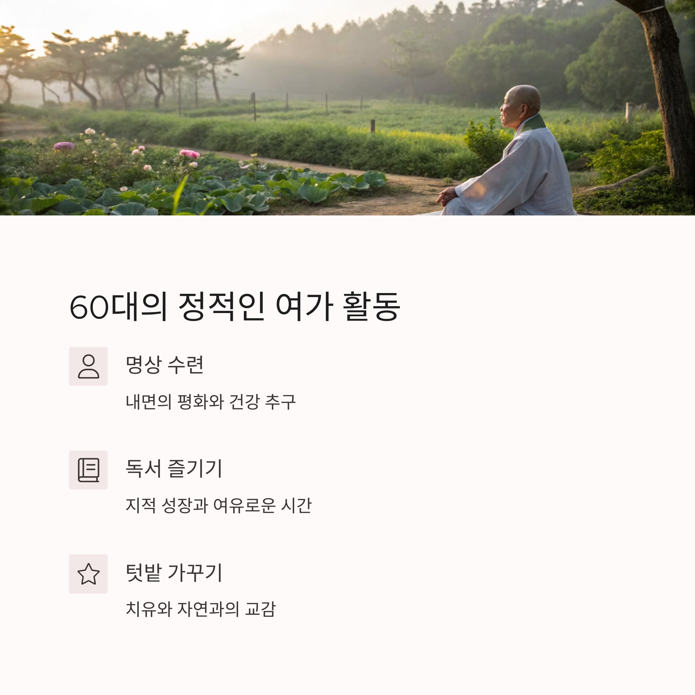 60대는 내면의 안정과 건강 유지를 더욱 중요하게 여깁니다.